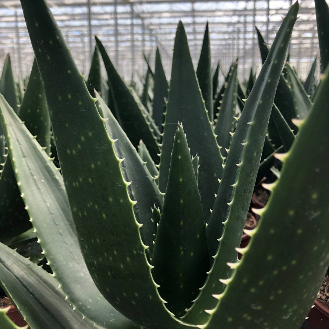The unique Astroloba dinosaur variety owes its name to its colour: dark green with a few light green spots. It is an extremely hardy succulent and quite large in size. The soft spines on the leaves are a translucent shade of greenish white.